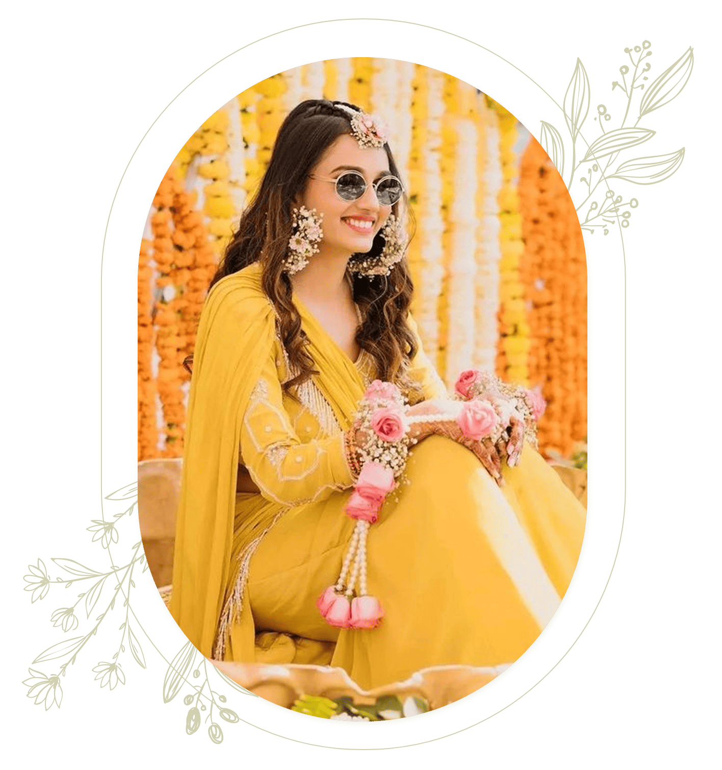 We also offer a beautiful range of floral umbrellas for bridal entries, haldi plates, engagement ring platters, kaleere, haldi and mehendi gifting options, and many other items designed to make your wedding more colourful and memorable.